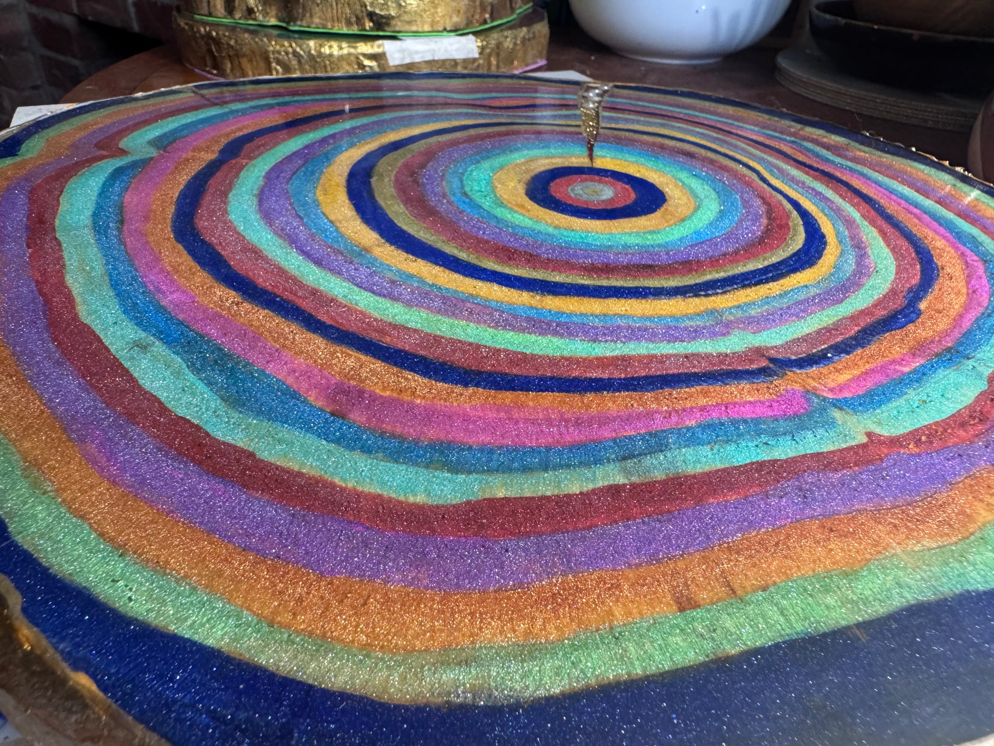 Large wooden epoxied plinth table centrepiece